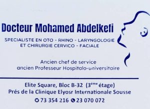 Dr Mohamed Abdelkefi est un médecin ORL, spécialiste en Oto-Rhino-Laryngologie et chirurgie cervico-faciale à Sousse.