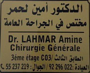 Dr Amine LAHMAR chirurgien général à Grombalia – Nabeul, spécialiste en chirurgie digestive et générale.