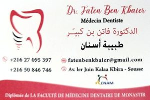 Dr Faten BEN KBAIER met en œuvre dans cabinet dentaire à Kalaa Kebira de multiples techniques pour soigner, corriger et embellir votre dentition.