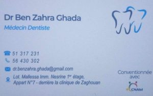 médecin dentiste à Zaghouan, Dr Ghada Ben Zahra