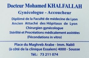 Dr Mohamed KHALFALLAH Gynécologue – Accoucheur à Sousse, diplômé de la Faculté de Médecine de Lyon