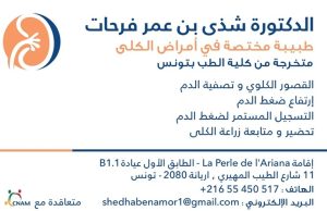 le Néphrologue à Ariana Dr Shedha BEN AMOR FARHAT est un médecin spécialiste en néphrologie et hypertension artérielle.