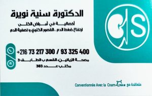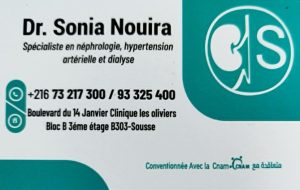 Dr Sonia NOUIRA médecin néphrologue à Khezama Sousse, conventionéé avec LA CNAM, spécialiste en néphrologie, hypertension artérielle et dialyse.