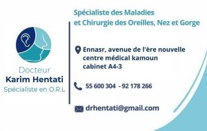 Dr Karim Hentati médecin ORL à Ennasr 2 spécialiste en chirurgie cervico-faciale et la sphère ORL: oreille, gorge, nez et glandes salivaires.