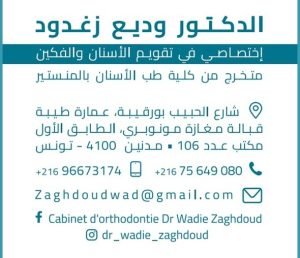 Dr Wadie ZAGHDOUD Orthodontiste à Médenine, diplômé de la faculté de médecine dentaire de Monastir, spécialiste en orthopédie dento-faciale.