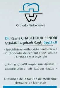 Dr Rawia CHABCHOUB FENDRI Orthodontiste à Sfax, spécialiste en orthodontie et Orthopédie dento-faciale, diplômée de la Faculté de Médecine Dentaire de Monastir.