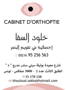Khouloud Sakka orthoptiste à Sfax assure des actes de rééducation orthoptique et traite les troubles de la vision.