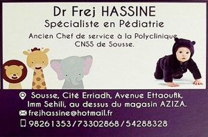 Dr Frej HASSINE ancien chef de service à la Polyclinique CNSS de Sousse, spécialiste en Pédiatrie à cité Erriadh Sousse.