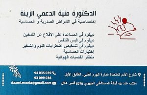 الدكتورة منية الدعمي الزينة أخصائية في الأمراض الصدرية و الحساسية بقصرهلال
