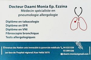 Dr Monia DAAMI ép EZZINA Pneumologue à Ksar Hellal, médecin spécialiste en Pneumologie et allergologie.