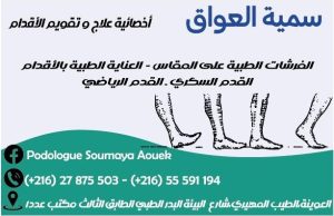 سمية العواق أخصائية علاج و تقويم الأقدام بحي الواحات – العوينة سكرة